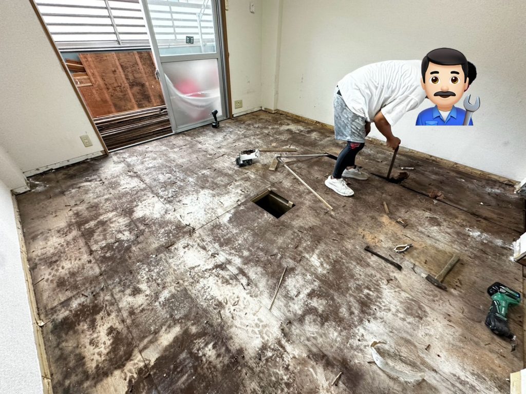 まずは既存の床をすべて撤去し、下地から新しく造り直す作業からスタート。